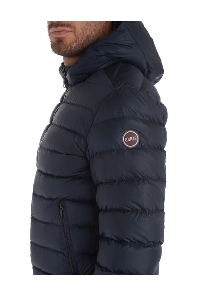 Blue Colmar Down Jacket in semi -opgeloste en water -afleverige stof. Zijlogo Samenstelling: 100% polyester voering: 100% polyester lichtvulling in natuurlijke veer: 90% eendenveren, 10% eendenveer