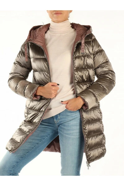 Gevoerde nylon stof en niet -ontstelbare nek met hoge capuchon gewatteerd met sluiting met lange mouwen met tweewegende ritssluiting voor de voorzakken met zip -patch -logo op het loze van de mouwpatch op het omkeerbare rugkussen: echte veerhoogte van het model (cm): 175 size veren veren. : 40 Samenstelling: 100%polyamide