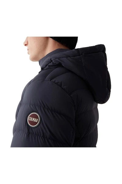 De jas van mannen met afneembare kap, gemaakt van stretchstof en opgevuld met natuurlijke down. Een steeds groen model met regelmatig quilten over het hele lichaam en een elastisch lint in toon aan de randen van de manchetten en de bodem. Comfortabele zijzakken en praktische binnenzak. Met de trekkoord op de motorkap kunt u de breedte aanpassen. Zip sluiting zakken zakken en interne Zip Pocket afneembare kap met snap -knoppen verstelbare trekstring op de kapsel Elastische tape op manchetten en bodem natuurlijke veren vulling waterafstotende behandeling colmar originelen logo aangebracht op de linker mouw