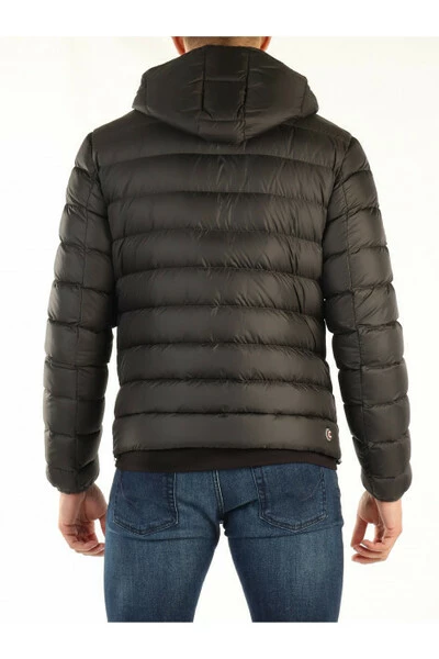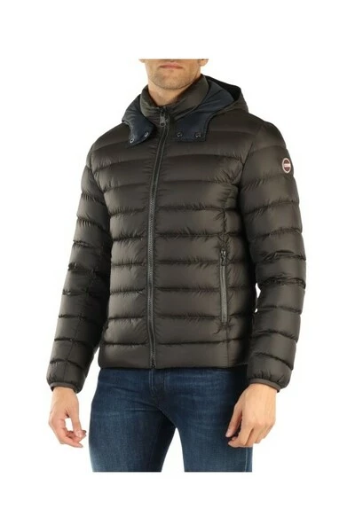 Gevoerde nylon stof en gewatteerde hoge kraag met hoge capuchon lange mouwen met elastische manchetten sluiting met zip- en tirazip -logo voorzakken met zip patch -logo op het mouw patch -logo op de achterkant coulisse in principe vulling: echte veerhoogte van het model (cm): 185 veren grootte groot : 48 Samenstelling: 100%polyamide