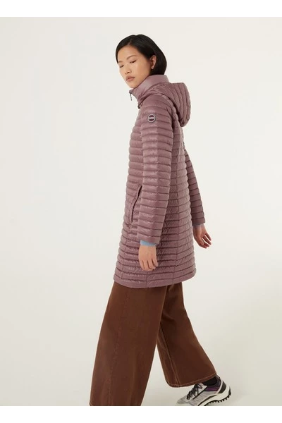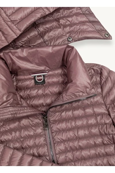 Middenlengte vrouwen ; s jas gemaakt van iriserende gerecycled stof met waterafstotende behandeling. Opgevuld met licht natuurlijk naar beneden. Een essentieel kledingstuk, enigszins gemonteerd op de heupen, met een afneembare kap en regelmatige donsjassen. Van middelgrote gewicht is het geschikt voor het herfstseizoen en perfect om elke look te voltooien, zowel voor het kantoor als voor vrije tijd. Het iriserende effect geeft licht aan de iconische Colmar Originals 100 Grams.zip Sluiting