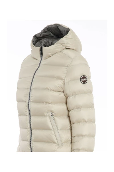 Dames donsjack met capuchon van Colmar. Gemaakt van waterafstotende stof en gevoerd met eendendons. Een ideaal model voor de winter. Voorzien van logo op de linkermouw en elastische onderkant en manchetten. Comfortabele ritssluiting en zakken met ritssluiting.