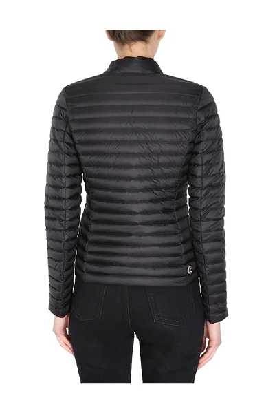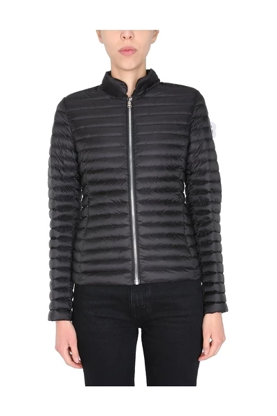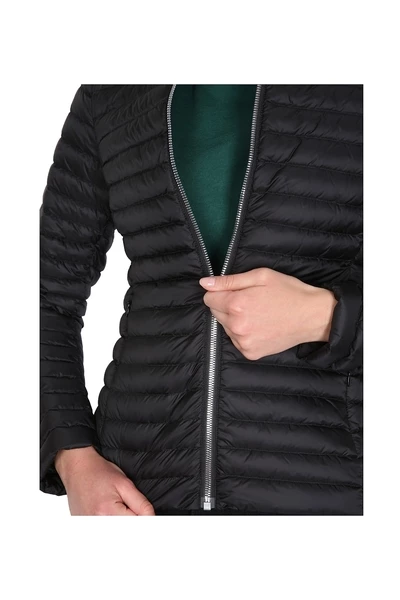 Polo -nek, zip -sluiting voor de voorkant, logo -patch op de mouw, twee zijkastzakken, irodore afstotende behandeling, nylon leed binnen, model is 180 cm lang en draagt ​​maat 40 IT.