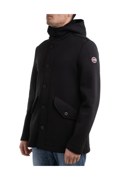 Colmar originele dikke hoodie jas voor mannen in stretch gebreide stof van acryl- en wolmengsel, normale pasvorm, met vaste kap, zichtbare centrale knooppunten, voorste laszakken met flap en knop, klein rubberen logo -patch op de lange mouw en aan de achterkant