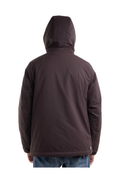 De jas van mannen, met afneembare kap, gemaakt van een ondoorzichtige stof met waterafstotende behandeling. De warme tone-op-tone synthetische vacht van het interieur en de zachte vulling maken dit kledingstuk ideaal voor het onder ogen zien van de harde wintertemperaturen. De dubbele centrale sluiting met zip en knoppen en de kikkers bij de polsen zijn een andere manier om de kou weg te houden. Zip en snapknop sluiting