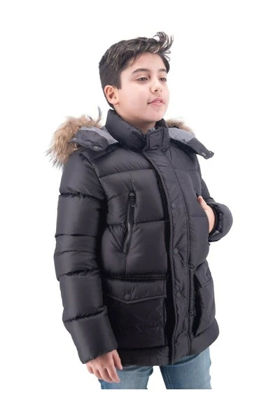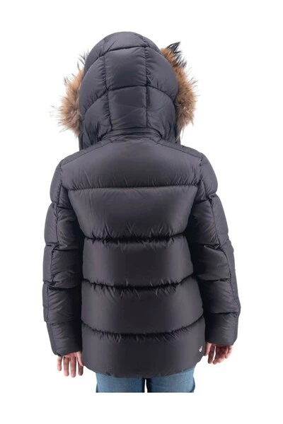 Lang model omlaag jasje met verwijderbare kap in gewatteerde vacht met maxi -zakken en logo op de hoofdschouder bij voorkeur bruikbaar in de winter gemaakt in roorsamenstellingsschaal: 100%nylon 1e schaal: 100%nylon voering: 100%nylon vulling: 90%eend omlaag + 10% eendenveren 1e vacht: 100% bont bont